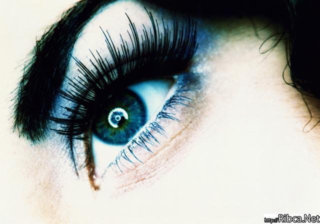 | На верхнее веко нанесите тени насыщенного зеленого, аквамаринового |